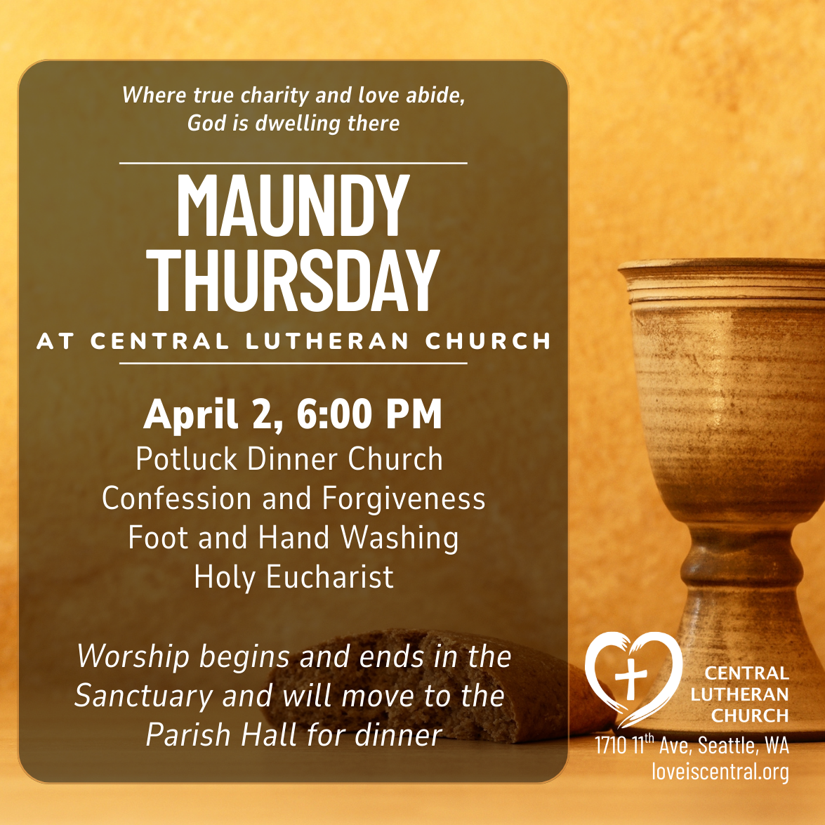 Maundy Thursday ~ April 2, 6:00 pm (Note the New Time!)